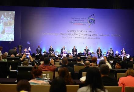 La sessione inaugurale ha visto alternarsi sul palco i rappresentanti istituzionali indonesiani (il presidente Susilo Bambang Yudhoyono e il ministro degli esteri Marty M. Natalegawa), le più alte cariche dell’ONU e i Ministri degli esteri di Spagna e Turchia. “In un momento di particolare difficoltà – ha detto Nassir Abdulaziz Al-Nasser, Alto rappresentante della Alleanza delle Civiltà dell’ONU – con conflitti in Iraq, Siria, Medio Oriente e Centro Africa, il tema dell’unità nella diversità assume ancora più rilevanza. Oggi celebriamo il nostro sesto Global Forum e la scelta del Paese ospitante è particolarmente significativa. L’Indonesia è un’icona di come 230 milioni di abitanti con differenti background possano far convivere pluralismo e coesistenza”. “Essere diversi – ha poi proseguito il Presidente della 68esima Assemblea generale ONU, John W. Ashe – non vuol dire essere divisi. Il futuro é adesso. In questo senso credo che un ruolo decisivo per cambiare il mondo sarà esercitato soprattutto dai giovani e dalle donne e invito tutti coloro che possono avere un ruolo nel dialogo interculturale a non dimenticare queste due categorie fondamentali”.
