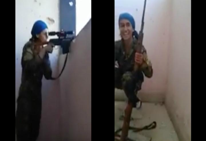 Una cecchina curda ha rischiato di morire quando un colpo sparato dal nemico le ha quasi sfiorato la testa: la combattente ha reagito mettendosi a ridere, video