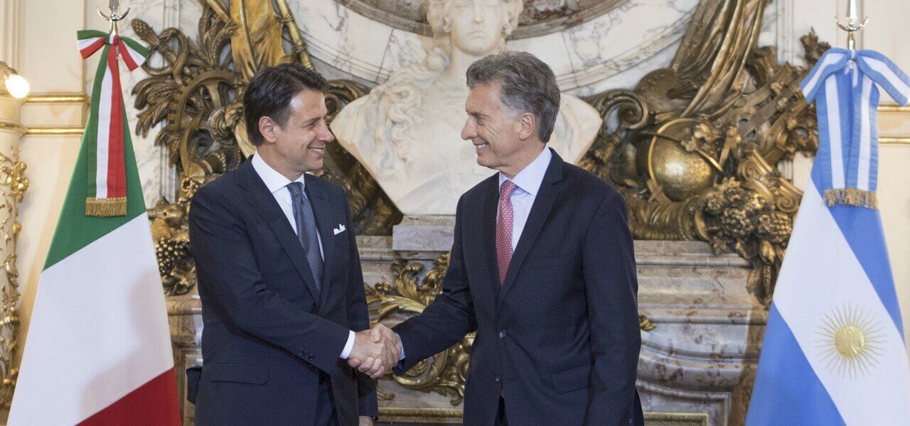 Giuseppe Conte con il presidente argentino Mauricio Macri (LaPresse)