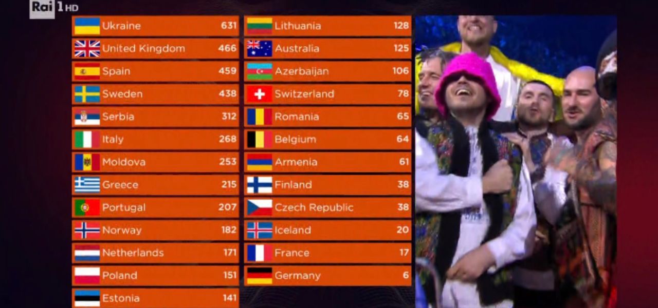 Classifica finale Eurovision 2022