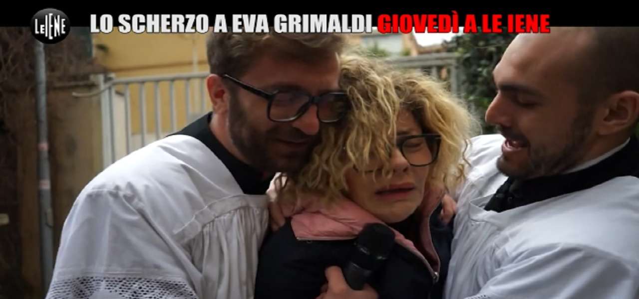 Scherzo davvero diabolico quello organizzato de Le Iene ad Eva Grimaldi. Alla nota attrice hanno fatto credere di essere stata tradita da sua moglie, Imma Battaglia (complice ovviamente del programma di Italia 1), con una suora. Inizia tutto mentre la coppia si trova in un ristorante di Roma: Imma racconta ad Eva di aver incrociato per strada un gruppo di suore, che le hanno poi lasciato un volantino sull’amore. A quel punto le due decidono di incontrarsi con queste sorelle, e si ritrovano a pregare in casa loro in cerchio, assieme alla bellissima Suor Elisa, molto giovane e dal profumo penetrante. Tutto fila liscio fino al giorno dopo, quando Eva, rientrando in casa, nota il letto disfatto con la collana della suora del giorno prima, che sbuca da sotto le lenzuola. A quel punto la Grimaldi chiede dei chiarimenti ma Imma nega ogni cosa: “Credi che sia stata a letto con la suora?”. Ma ad Eva qualcosa non torna sentendo anche il profumo di suor Elisa… Il giorno dopo, poi, succede quello che la Grimaldi non si sarebbe mai aspettata: scopre la moglie a letto con la suora. A quel punto, delusa, Eva scappa via in lacrime, prima di essere fermata da Stefano Corti e Alessandro Onnis vestiti da chierichetti. (aggiornamento di Davide Giancristofaro)