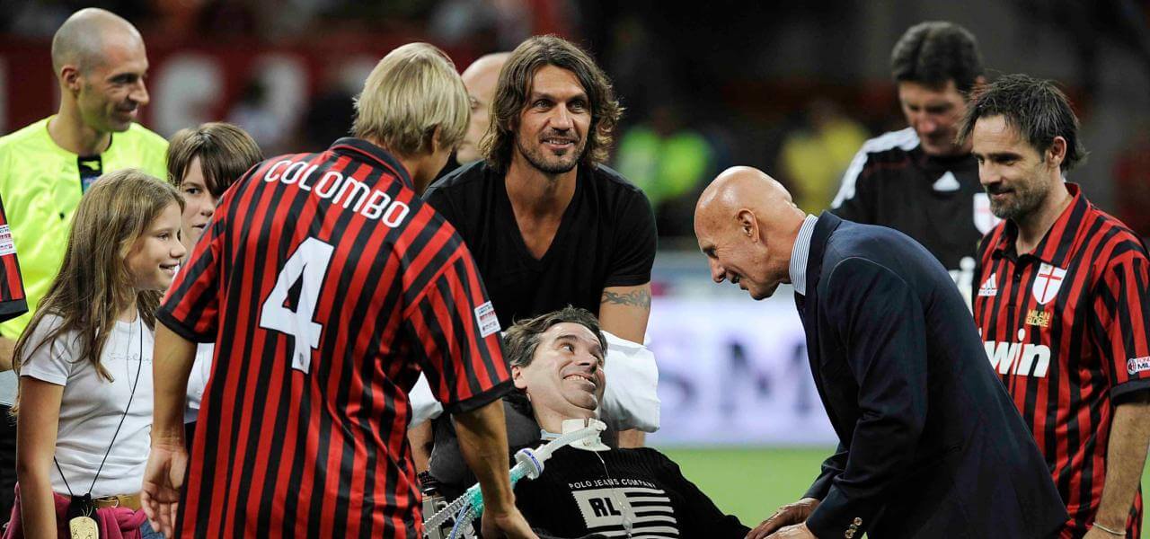 Stefano Borgonovo con Sacchi, Maldini, Colombo e Marco Simone (LaPresse, 2019)
