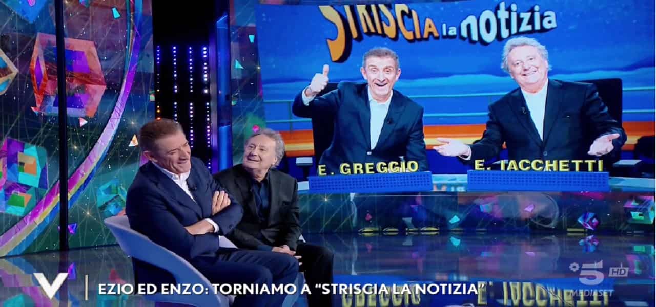 Ezio Greggio ed Enzo Iacchetti tornano questo pomeriggio negli studi di “Verissimo”, salotto televisivo dove sono oramai di casa: infatti una delle coppie di conduttori più famose e iconiche del piccolo schermo saranno nuovamente ospiti della padrona di casa, Silvia Toffanin, per raccontarsi in vista di un altro ritorno, questa volta però nelle postazioni che per loro sono più congeniali ovvero quelle di “Striscia la Notizia”. Infatti dal prossimo 12 dicembre Greggio e Iacchetti, il duo di conduttori più longevo del programma in onda su Canale 5, torneranno al timone del tg satirico di Mediaset e dietro quel bancone che li vede in onda da quasi trent’anni.