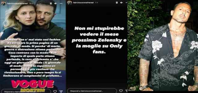 Corona non condivide la scelta del Presidente dell’Ucraina di posare con la moglie Olena per un magazine patinato come Vogue e commenta duramente tale atteggiamento sui social. In una successiva storia pubblicata sul proprio profilo Instagram, poi, lancia una nuova provocazione nei confronti di Zielenski.