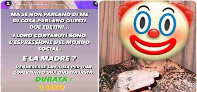 A rispondere a Corona, sempre sui social, è stato proprio Alessandro Basciano che, tra le storie del proprio profilo Instagram, ha condiviso una foto di Corona coprendo il suo viso con la faccia di un clown.