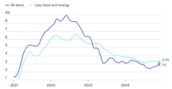 La discesa attesa però non c’è stata: l’inflazione annuale è rimasta al 3%, mentre su base mensile è incrementata dello 0,5%, un aumento che non si verificava da agosto 2023.