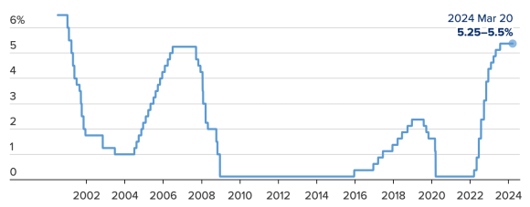 La Federal Reserve ha mantenuto i tassi d'interesse al 5,5% e prevede di effettuare tre tagli durante il 2024. I mercati vedono confermate le loro scommesse