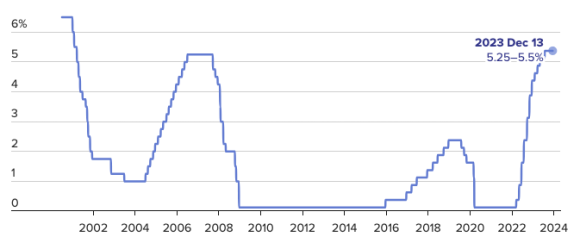 Durante la conferenza stampa che si è tenuta nel pomeriggio del 13 dicembre, la Federal Reserve ha annunciato di mantenere invariati i tassi d’interesse federali, fissati ai massimi degli ultimi 22 anni al 5,5%. Questa decisione segna molto probabilmente la conclusione di questo lungo ciclo di rialzi iniziato nel marzo 2022. Nonostante ciò, il Presidente Powell ha sottolineato che la lotta all’inflazione non è ancora conclusa, e che ulteriori misure restrittive potrebbero essere attuate in caso di necessità.