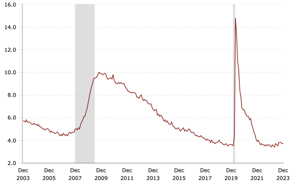 La scorsa settimana è stato infatti rilasciato il dato della disoccupazione negli Stati Uniti, il quale si è attestato al 3,7%, battendo le aspettative che prevedevano un 3,8%. Le nuove buste paga nel settore non agricolo hanno anch’esse battuto le aspettative, con una crescita di 216 mila nuove buste paga rispetto alle previsioni di 168 mila. Infine, anche gli stipendi nel settore privato non agricolo stanno continuando a crescere, e a dicembre 2023 hanno registrato una crescita mensile dello 0,4% e annualmente del 4,1%.