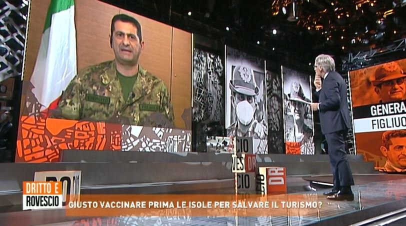 Il commissario per l’emergenza Covid, il Generale Figliuolo, è stato intervistato ieri sera in collegamento con il programma di Rete 4, Dritto e Rovescio, condotto da Del Debbi. Tanti gli argomenti trattati dal comandante logistico dell’esercito italiano, a cominciare dalla possibilità di aumentare il numero di dosi di vaccini giornaliere somministrate, così come spiegato dallo stesso pochi giorni fa: “Più di 500mila vaccinazioni? E’ stato raggiunto questo traguardo e bisogna tenerlo in maniera costante. Settimana scorsa abbiamo fatto 3.2 milioni di dosi, più di 400mila al giorno. Per questo mese avremo 17 milioni di vaccini, ci potrebbero comunque essere punti morti ed avere un calo, ma a giugno si potrebbe incrementare quando avremo più vaccini. In questo mese dobbiamo tenere costante la macchina organizzativa poi a giugno quando arriveranno sui 23/24 milioni di dosi la capacità sarà pronta per poter inoculare tutto ciò che sarà possibile fare. Sono confidente perchè fino ad ora abbiamo fatto il 90% medio di somministrazioni”.