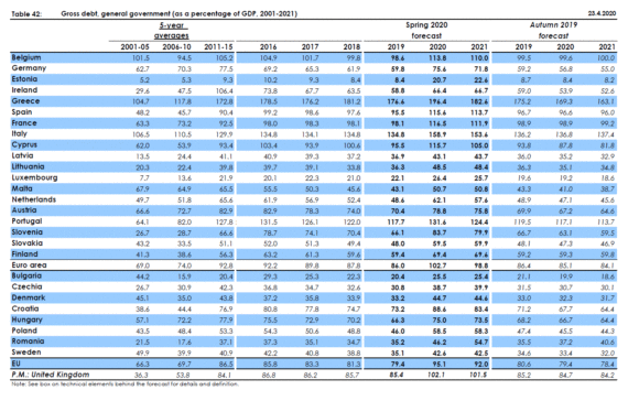 Sempre analizzando i numeri degli ormai “solitari”, e ponendo particolare attenzione al recente documento sulle “Previsioni economiche di primavera 2020” della Commissione Ue, si può notare come l’andamento del loro rapporto “debito pubblico/Pil” mostri – tra il 2019 e il 2020 – un incremento percentuale maggiore rispetto agli altri paesi.