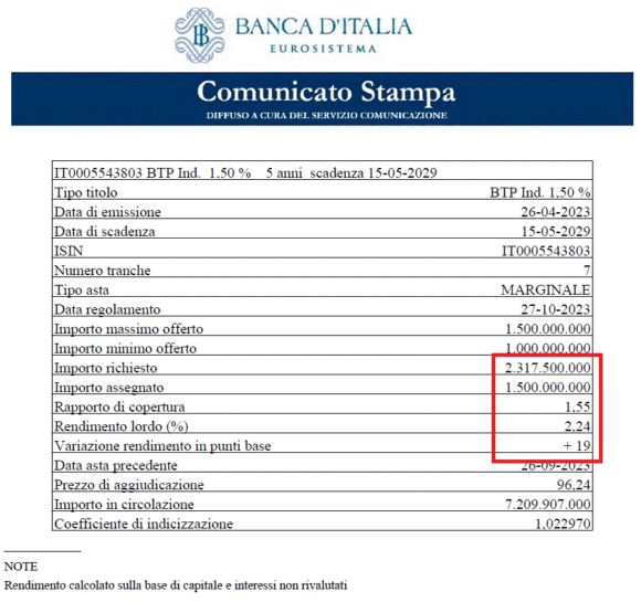 Come dimostrato i numeri e, quindi, gli stessi fatti erano davanti agli occhi di tutti. Bastava guardare, andare oltre e sollevare “il problema” (prima) e non come spesso accade solo dopo. Il monito del Presidente Patuelli è sicuramente stato tempestivo. Da non dimenticare e, soprattutto, da non sottovalutare: in ogni sede. Un errore di valutazione potrebbe costare caro allo Stato italiano sia in termini di credibilità che in ambito monetario: ieri, l’esito delle aste di titoli di Stato (Btp a 2 e 5 anni) che si sono concluse, ha rappresentato l’ennesimo aggravio per la tesoreria Italia, infatti, a fronte di una domanda elevata (entrambi con un rapporto di copertura oltre l’1,5) il rendimento finale ha registrato un rialzo: +3,99% (+2 punti base) il titolo a due anni con scadenza 29 settembre 2025 e +2,24% per il quinquennale Btp indicizzato (scadenza 15 maggio 2029).