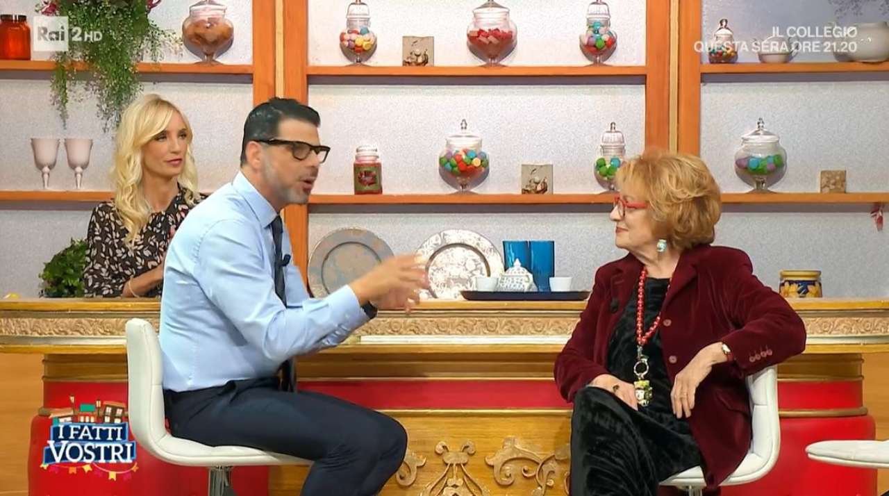 Fioretta Mari, grande attrice italiana, ospite questa mattina negli studi del programma di Rai Due, I Fatti Vostri. “Avevo tre anni quando ho debuttato con la canzone Porta un bacione a Firenze, io non mi ricordo niente. Io ho debuttato con mia madre a teatro, mi è scappata la pipì e l’ho fatta in scena”, ha raccontato Fioretta Mari per poi dedicare un verso siciliano al conduttore Salvo Sottile. “Mio papà era colonnello, mi ha insegnato tutto, ad essere perfetta, in orario. La Borboni mi amava e mi diceva che ero l’unica che arrivavo in anticipo”.