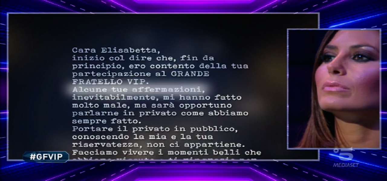 Arriva un gesto di riappacificazione per Elisabetta Gregoraci da parte di Flavio Briatore. Nella Casa del Grande Fratello Vip arriva per la conduttrice la lettera dell’ex marito. Eccone una parte: “inizio con dire che fin dal principio ero contento della tua partecipazione al Grande Fratello Vip. Alcune affermazioni, inevitabilmente, mi hanno fatto molto male, ma sarà opportuno parlarne in privato come abbiamo sempre fatto. Portare il privato in pubblico, conoscendo la mia e la tua riservatezza, non ci appartiene. Facciamo vivere i momenti belli che abbiamo vissuto e ti ringrazio per le parole con cui mi hai descritto in confessionale quando ho rivisto la vera Eli.” La Gregoraci è molto felice del gesto che, Fulvio Abbate trova un “nulla osta per fidanzarti con Pierpaolo Pretelli”. (Aggiornamento di Anna Montesano)