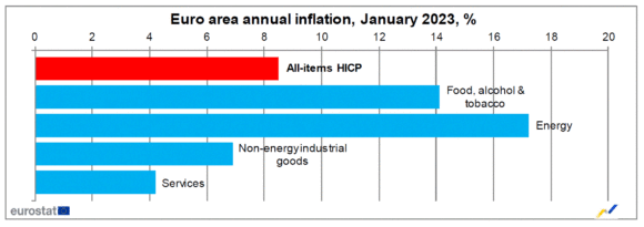 Guarderemo con molta attenzione alle prossime pubblicazioni di Istat, ma, già in queste ultime ore, la stima flash di Eurostat può – momentaneamente – acquietarci rispetto a questo male comune rappresentato dall’inflazione: a gennaio, infatti, l’indice dei prezzi dell’Eurozona è sceso all’8,5% rispetto al 9,2% dello scorso dicembre. Un ulteriore passo avanti in direzione di una ancora lontana normalità che, senza troppi giri di parole o eventuali previsioni, richiederà molto tempo.