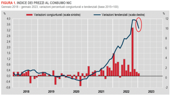 Ma, come sempre, è obbligatorio andare oltre ogni aspetto soggettivo e le rilevazioni di ventiquattrore fa, sono complessivamente molto buone: «Secondo le stime preliminari, nel mese di gennaio 2023 l’indice nazionale dei prezzi al consumo per l’intera collettività (NIC), al lordo dei tabacchi, registra un aumento dello 0,2% su base mensile e del 10,1% su base annua, da +11,6% nel mese precedente». E sintetizzate nel consueto Commento trovano una storica contestualizzazione: «Le stime preliminari evidenziano la netta attenuazione dell’inflazione, che a gennaio si attesta al +10,1% (livello che non si registrava da settembre 1984, quando il NIC fece segnare la medesima variazione tendenziale)». A motivare questo significativo rallentamento c’è stata «l’inversione di tendenza dei Beni energetici regolamentati (-10,9% su base annua)».
