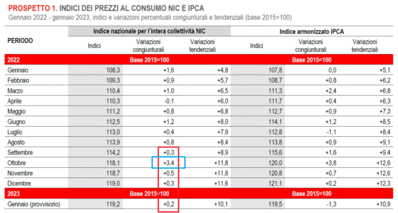 Osservando le variazioni congiunturali dei singoli mesi (rif. periodo della nostra analisi) è oggettivo il riscontro di una progressione contraddistinta da continui rialzi che, di fatto, vede conseguire il precedente obiettivo indicato; allo stesso tempo, però, la sommatoria degli stessi incrementi eccede il target da noi preventivato in precedenza ossia compreso tra un minimo a +1,9% e un massimo a +2,5%: infatti, quanto rilevato da Istat, riporta un ammontare pari al +4,7% che sostanzialmente rappresenta un vero e proprio abisso rispetto alla stima paventata. A rovinare l’intera “previsione” c’è quell’incremento di oltre tre punti percentuali che, il solo mese di ottobre, ha contribuito a stravolgere ogni tipo di plausibile valutazione. In noi, un certo senso di disagio, è ancora presente.