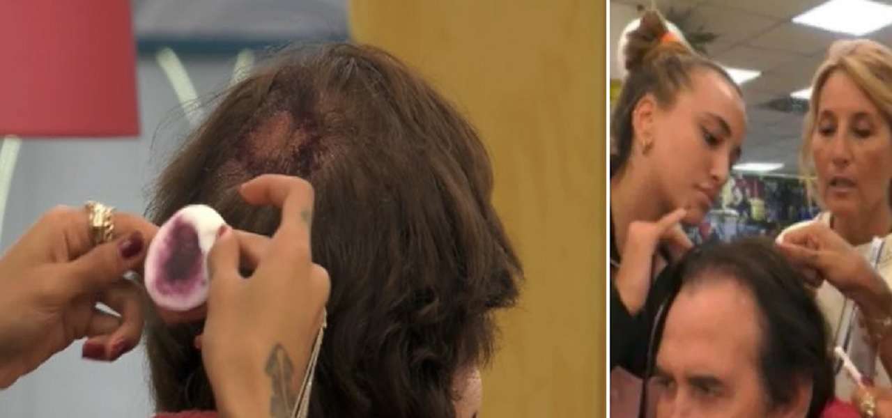 Francesca Cipriani mette lo smalto in testa a Giucas Casella al Grande Fratello Vip per coprire la calvizie, lui "Mi sento stordito"