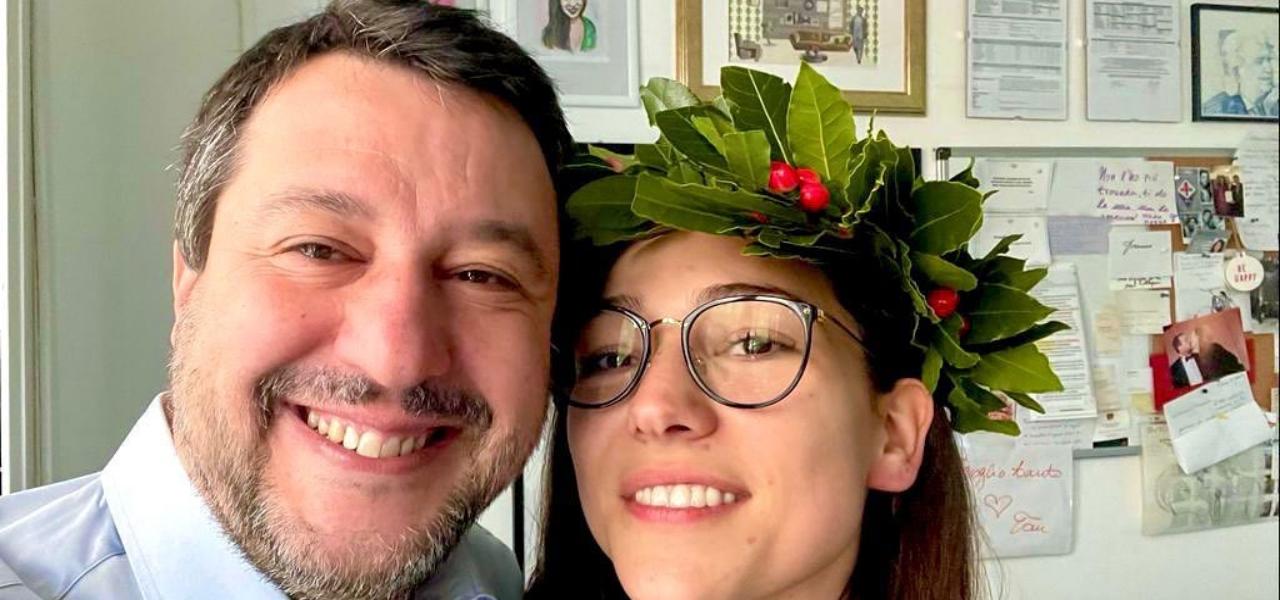 Francesca Verdini si laurea e Matteo Salvini la celebra sui social. Ha pubblicato, infatti, una foto di coppia in cui appaiono entrambi sorridenti. Ma è diversa dal solito, perché la fidanzata ha in testa una corona di alloro, segno evidente della laurea che ha appena conseguito. L’immagine compare sull’account Instagram del leader della Lega, che ha pubblicato un post con un messaggio di congratulazioni per la giovane. «Stamattina qualcuno è diventato dottore magistrale in Economia e direzione delle imprese», scrive Salvini aggiungendo una faccina che sorride e arrossisce alla fine della frase.