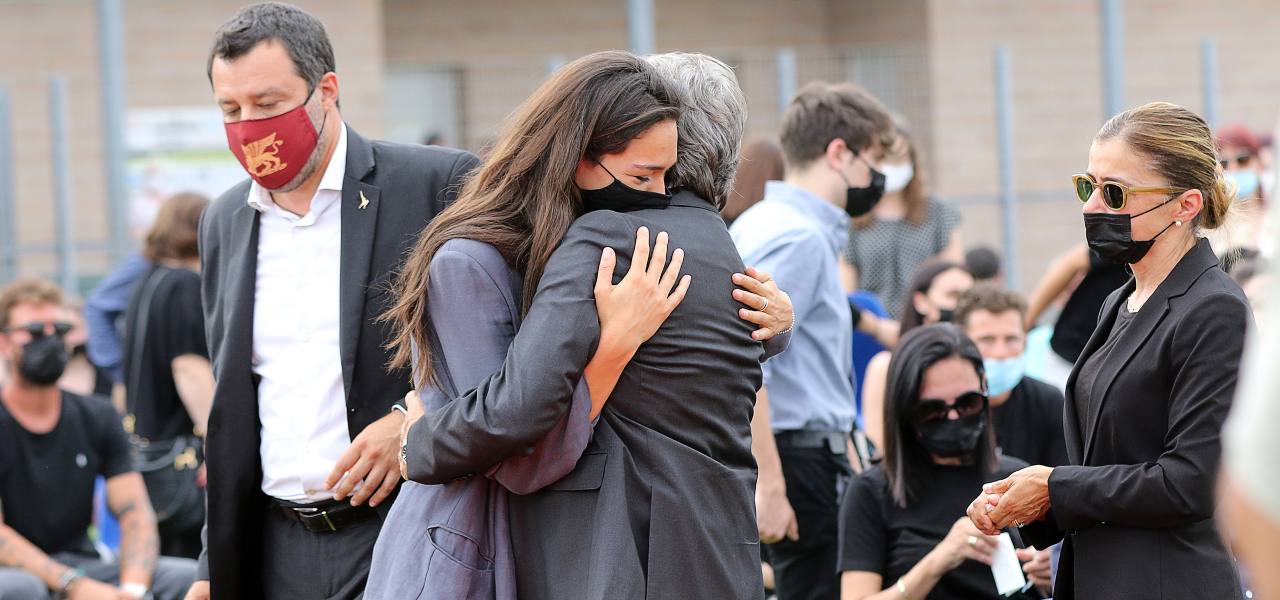 Francesca Verdini e Matteo Salvini ai funerali di Michele Merlo (Foto: LaPresse)