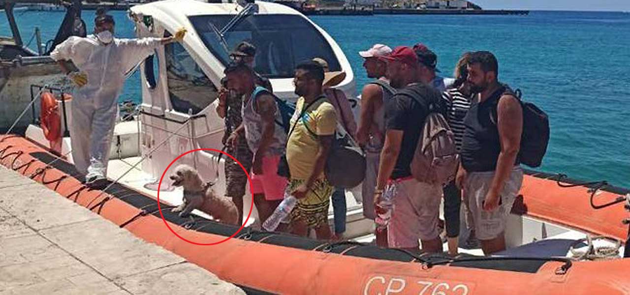 I migranti col barboncino in arrivo a Lampedusa (Twitter, 2020)