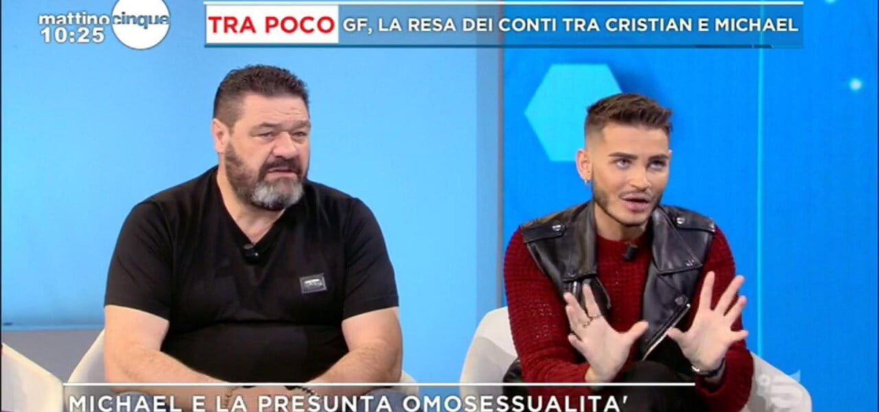 Franco Terlizzi e Cristian Imparato tornano in coppia a Mattino 5. Il primo deve commentare le nuove lacrime del figlio e il bacio con Gianmarco Onestini per il gioco voluto dal Grande Fratello, mentre il secondo deve chiarire il suo rapporto con Turchese Baracchi. Quest’ultima l’ho accusato di voler per forza far dire a Michael qualcosa che lui stesso non voleva ma alla fine tra risate e scherzi, sembra che sia Franco quello ormai in balia del pubblico e di quello che pensano di suo figlio. Il pugile sembra pronto a rimanere a passo con i tempi continuando a sottolineare che se il figlio fosse gay non ci sarebbe niente di male e anche quando si parla del bacio che lui ha dato a Gianmarco fa lo stesso incalzando addirittura Luca Onestini dicendogli: “Ma si sono baciati che male c’è, io l’ho fatto con tanti uomini!”.
