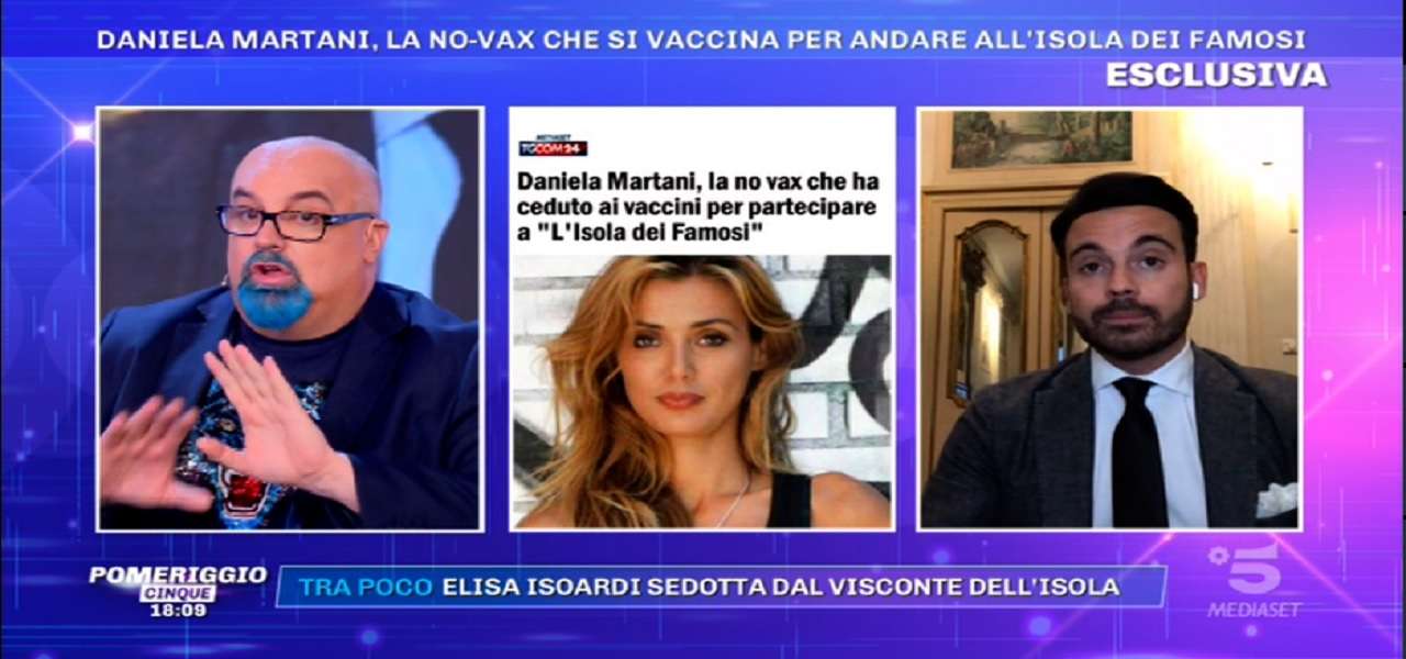 Scoppia la polemica su Daniela Martani, partita ancor prima dell’inizio della sua avventura all’Isola dei Famosi. Su Canale 5, a Pomeriggio 5, si parla di come, nonostante le sue dichiarazioni no-vax e contro l’uso delle mascherine, alla fine abbia deciso di sottoporsi lei stessa ai vaccini necessari per partecipare al reality. In studio. Giovanni Ciacci si dice sbigottito da questo comportamento e ricorda come in passato abbia più volte litigato con la Martani per le sue dichiarazioni sul Covid: “Le litigate che ci ho fatto io su questa poltrona? Lei diceva che non esisteva il Covid e diceva di non usare la mascherina, ma stiamo scherzando?” A dirsi pienamente d’accordo con lui è il giornalista Francesco Fredella, secondo cui la Martani dovrebbe utilizzare lo spazio avuto all’Isola in primis per chiedere scusa.