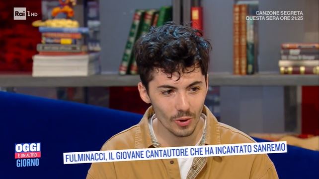 Il giovane cantante Fulminacci, reduce dalla recente esperienza al Festival di Sanremo 2021, è stato ospite negli studi del programma di Rai Uno, Oggi è un altro Giorno: “Il mio nome d’arte? Inventato ormai tre anni fa, è una sorta di crasi fra il mio nome e il mio cognome, io mi chiamo Filippo Uttinacci”. Il cantautore classe 1997 si dice soddisfatto della sua esperienza all’Ariston: “Sono molto contento, ora mi riposo e mi sono divertito tantissimo, è il massimo della soddisfazione, ci si diverte tanto e non vedi l’ora di tornare a casa quindi è perfetto. La mia esperienza a Sanremo i miei genitori l’han gestita con più difficoltà di me, io invece ho cercato di fare come nei film americani, facevo un respiro e poi andavo; ti fa sentire un cretino, ho fatto finta di sentirmi uno che ce la fa anche se stavo morendo di paura, e per fortuna ora è finita, è andata bene”.