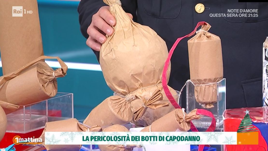 Massimiliano Ossini, conduttore di Uno Mattina, ha quindi chiesto all’esponente delle forze dell’ordina cosa si rischia con i fuochi d’artificio illegali: “Noi li trattiamo come dei veri e propri ordigni artigianali e già questa cosa da il senso su che tipo di prodotto è. La pericolosità? Si può arrivare anche a conseguenze mortali, uno di questi può portare anche alla morte se esplode inopinatamente”. Sui ferimenti causati fuochi d’artificio negli ultimi capodanni, il poliziotto spiega: “Sono dovuti ai botti illegali ma anche ad un utilizzo improprio di questo tipo di prodotti. Ad esempio anche il prodotto regolare se usato in maniera impropria può diventare causa di lesioni”.