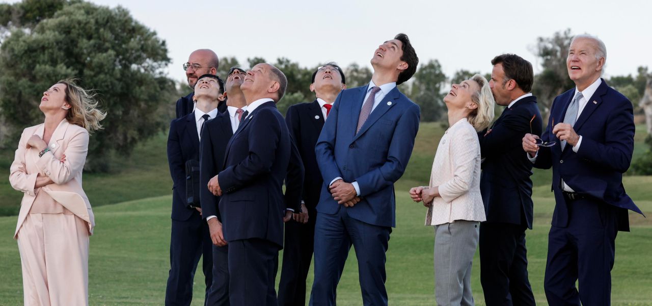 Ed eccoci finalmente al G7 “Made in Italy” che – dopo tanti antipasti tematici (è diventato uso che i vari ministri si sorridano nelle settimane precedenti in sedi minori, riunendosi tra loro per aree di competenza) – trionfa in Puglia con la premier Meloni che arriva al meeting in 500 (pubblicità occulta?) dimostrando però di essere l’unica credibile ed in una specie di club di morituri fantasmi.