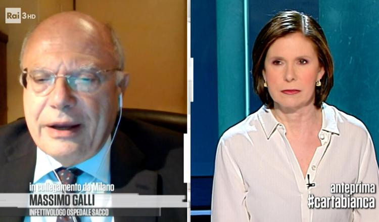Scontro a distanza tra Massimo Galli e Matteo Salvini a “Cartabianca”, trasmissione di Rai Tre condotta da Bianca Berlinguer. L’infettivologo dell’ospedale “Sacco” di Milano ha posto fine alle sue due settimane di silenzio stampa e ha scelto di ripartire dal programma del martedì sera, commentando la situazione attuale connessa alla pandemia di Coronavirus in Italia. L’esperto ha esordito tirando “un grosso sospiro di sollievo“ per l’andamento odierno, ribadendo che “un conto sono le decisioni e le scelte che devono fare i politici, un conto sono le valutazioni obbligatorie per coloro che devono interpretare i dati scientifici, con tutto il margine di incertezze che essi lasciano”.