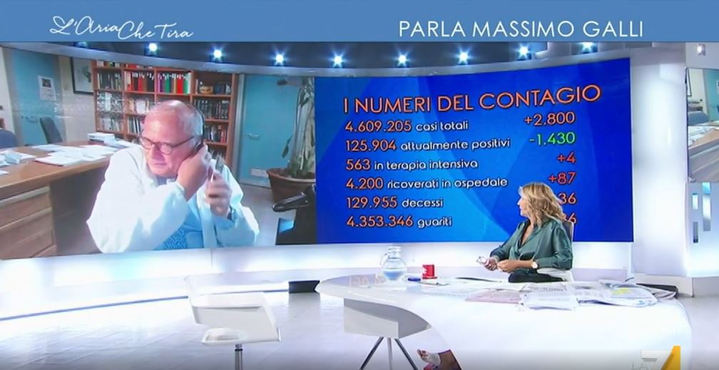 Galli che dopo essersi ricomposto ha parlato della pandemia di covid con L’Aria che tira, a cominciare dalla riapertura delle scuole che crea preoccupazione: “Abbiamo oggettivamente una quantità di bambini e adolescenti ancora non vaccinati, ciò rende complicato esentare gli uni e obbligare gli altri per l’utilizzo dei mezzi pubblici”. E ancora: “Sui mezzi pubblici chi lo va a constatare se il green pass c’è o non c’è, poi più viene esteso meglio è”. E sul vaccino ha aggiunto: “Il vaccino anti Covid sta passando da uso emergenziale a uso corrente, non è più considerabile come sperimentale. E’ stato attuato su centinaia di milioni di persone, ora abbiamo una necessità di vaccinazione a tappeto anche nei Paesi più poveri”.