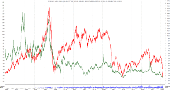 Gli Usa, messi all’angolo, rimarranno a guardare? Probabilmente no. Rimanendo nel comparto energy, riteniamo plausibile, un significativo incremento di volatilità su uno dei principali driver economico/nazionale del Paese governato da Putin: il prezzo del gas naturale. Su questa “voce di bilancio”, la Russia, nel 2018, occupa il secondo posto nella produzione mondiale e il primo gradino in veste di esportatore (fonte Ispi). Se al momento il “problema coronavirus” è stato arginato, il versante gas naturale vivrà un periodo interessante dal punto di vista operativo: qualora non ci fosse un significativo intervento a supporto del prezzo, la stessa Russia, potrebbe incappare in una profonda crisi economica che difficilmente Vladimir Putin risolverebbe nel breve e medio termine (nel grafico il confronto tra prezzo del petrolio WTI e del gas naturale).