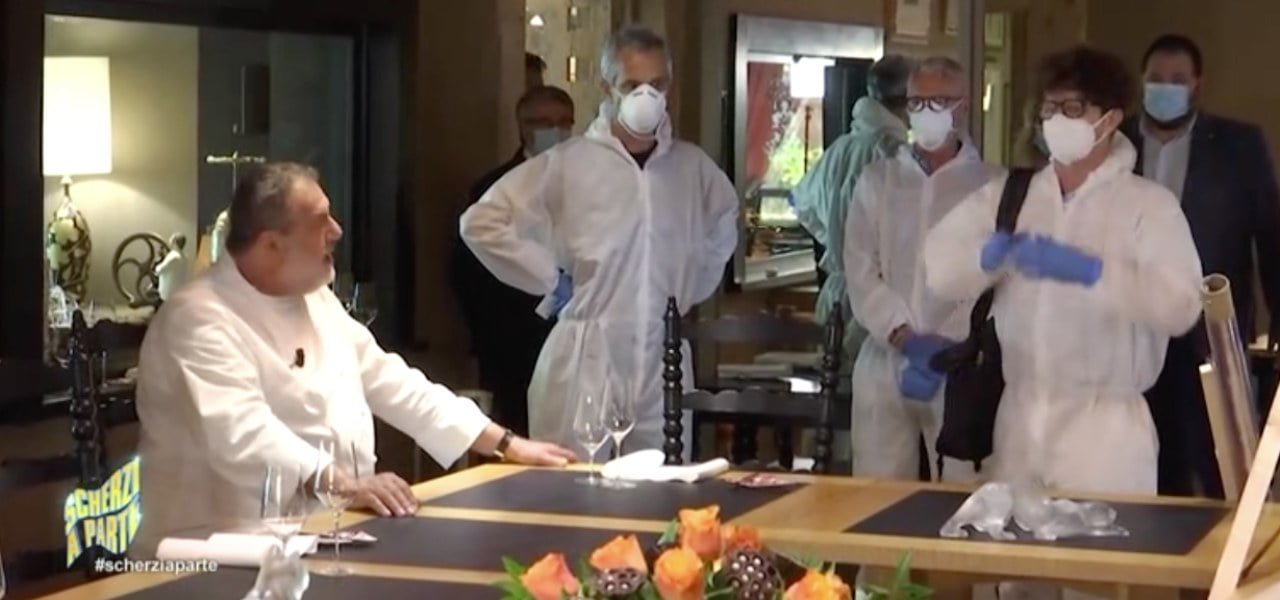 La candid camera ideata da Scherzi a parte ha fatto infuriare lo chef Gianfranco Vissani. Il giorno della riapertura del ristorante, infatti, i finti ispettori della Asl incaricati di controllare il rispetto delle norme anti-Covid hanno bloccato il tutto. Distanziamento sociale non rispettato e ambienti non igienizzati, con tanto di pentole appese in cucina.