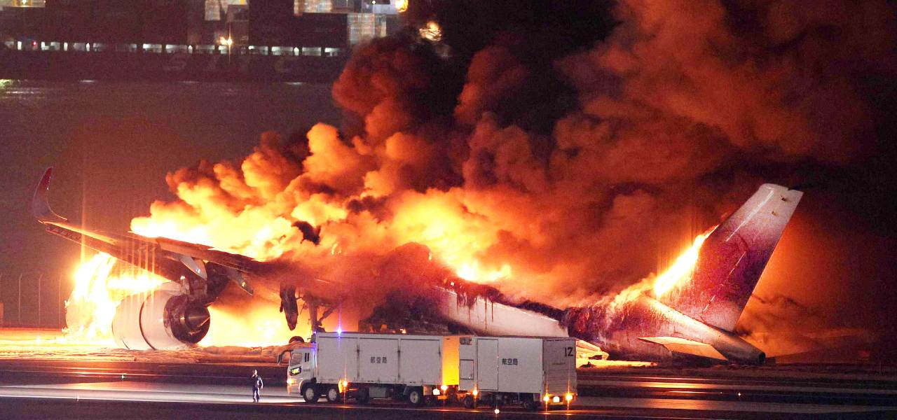 L’incendio dell’aereo di linea questa mattina divampato all’aeroporto di Haneda-Tokyo ha purtroppo provocato 5 morti, alcuni feriti e intossicati, quasi 400 passeggeri evacuati: secondo le informazioni stilate dagli inquirenti in Giappone, un aereo di linea della Japan Airlines ha preso fuoco dopo un contatto accidentale con un velivolo della Guardia Costiera. Le vittime sarebbero tutti e 5 presenti dell’equipaggio sull’aero militare.