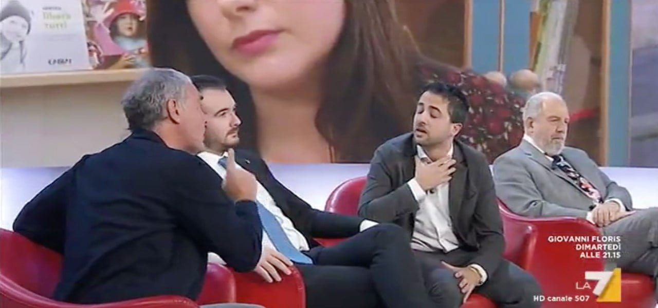 Qui allora scoppia la bagarre, con Massimo Giletti che alza la voce dicendo «Non è questione di populismo, è questione di educazione. Non ha il coraggio di dire queste cose in faccia, le dice sottovoce. Stia attento a quello che dice e non parli della mia moralità. Dopodiché arrivederci e grazie», e così facendo si alza e abbandona la trasmissione. Furfaro prova a difendersi, dicendo che non si tratta di attacchi personali ma di questioni legati all’etica giornalistica, ma la Merlino sconcertata “insegue” Giletti fuori dallo studio, salvo poi rientrare per continuare a condurre chiedendo lumi all’eurodeputato dem di quanto fosse successo: «Io penso che discutere così sia demagogico, glielo avrei detto se mi avesse fatto parlare». A difesa però del conduttore interviene Riccardo Molinari, capogruppo alla Camera della Lega, in mezzo ai due litiganti e dunque il più “titolato” per riportare quanto fosse successo a bassa voce pochi istanti prima: «No, gli hai detto che fa le interviste a Salvini, quindi un altro che non la pensa come lui è della Lega».