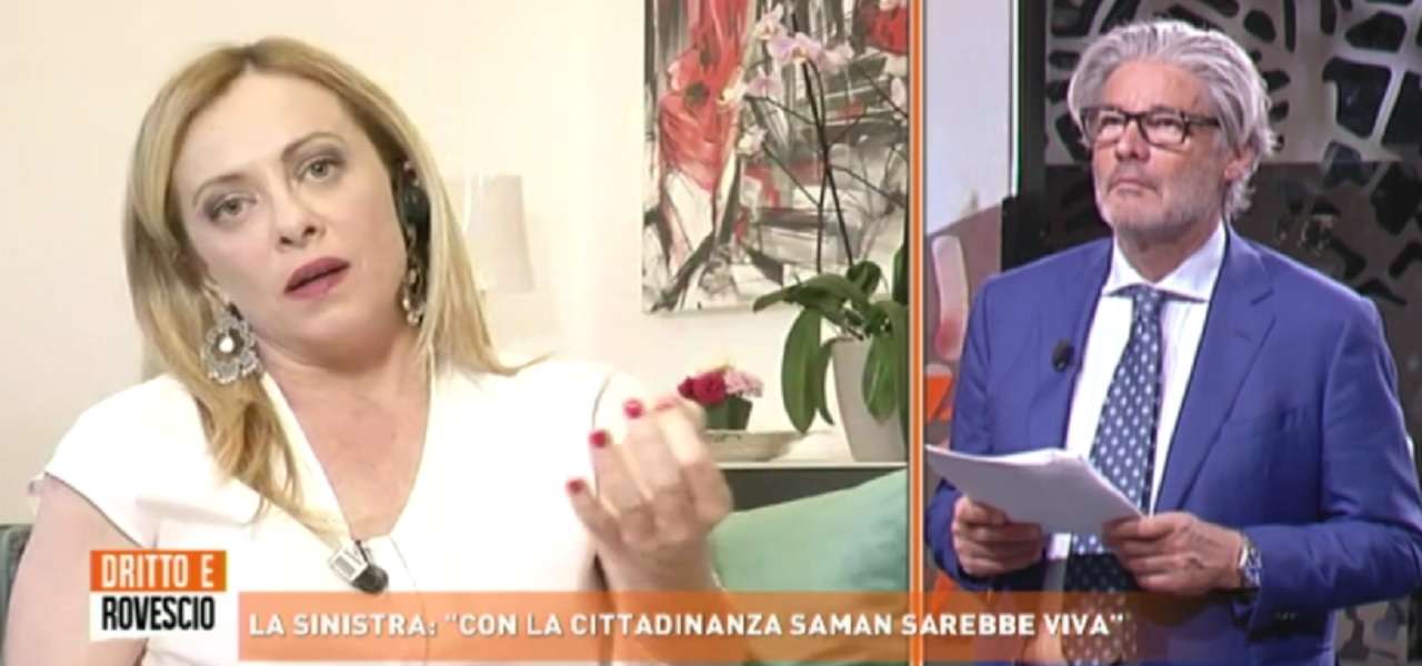 Giorgia Meloni a Dritto e rovescio sul caso di Saman Abbas: "Sono rimasta scioccata dall’Ucoii che ha fatto una fatwa contro i matrimoni misti"
