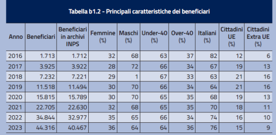 Però il XXIV Rapporto Inps dà conto dei discreti risultati determinati dalle politiche del c.d. rientro dei cervelli. Le informazioni sugli effetti degli incentivi nel settore privato e pubblico denotano che, nel periodo osservato (2016-2023), il numero dei beneficiari è cresciuto in modo esponenziale, passando da poco più di 1.700 nel 2016 a oltre 40.000 nel 2023: i dati di flusso di ingresso mostrano effettivamente un numero crescente di beneficiari, con 10.000 unità soltanto nel 2022; complessivamente, le donne rappresentano circa un terzo del totale dei beneficiari, una quota che mostra un andamento crescente nel tempo, dal 28% nel 2017 fino al 36% nel 2023.