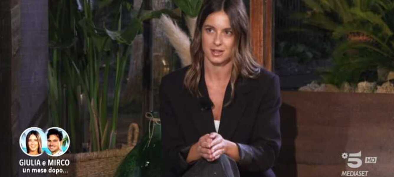 Durante la chiacchierata con Filippo Bisciglia, Giulia ha rivelato come sta adesso dopo la rottura con Mirco: “Oggi dentro di me io sento solo un vuoto. Lui mi ha uccisa li perché vedere delle cose dietro uno schermo ti fa sentire impotente. Per fortuna ho delle persone che mi vogliono bene e grazie ai quali io riesco ancora a superare. Io non posso accettare un ragazzo che mi lascia e dopo un’ora dice che ama un’altra.” Poi ha voluto fare una precisazione: “Ci tenevo a dire una cosa: io sono passata come una che non lavora invece io ho sempre lavorato e solo che da marzo non ho più un contratto ma adesso mi metterò su un’attività mia.” Ed infine ha concluso spendendo parole molto carine sulla single: “Alessia mi sembra una ragazza intelligente, con una testa sulle spalle non ha colpe se Mirco non prova sentimenti per me. A Giulia auguro tanta serenità, per tutta la vita.”