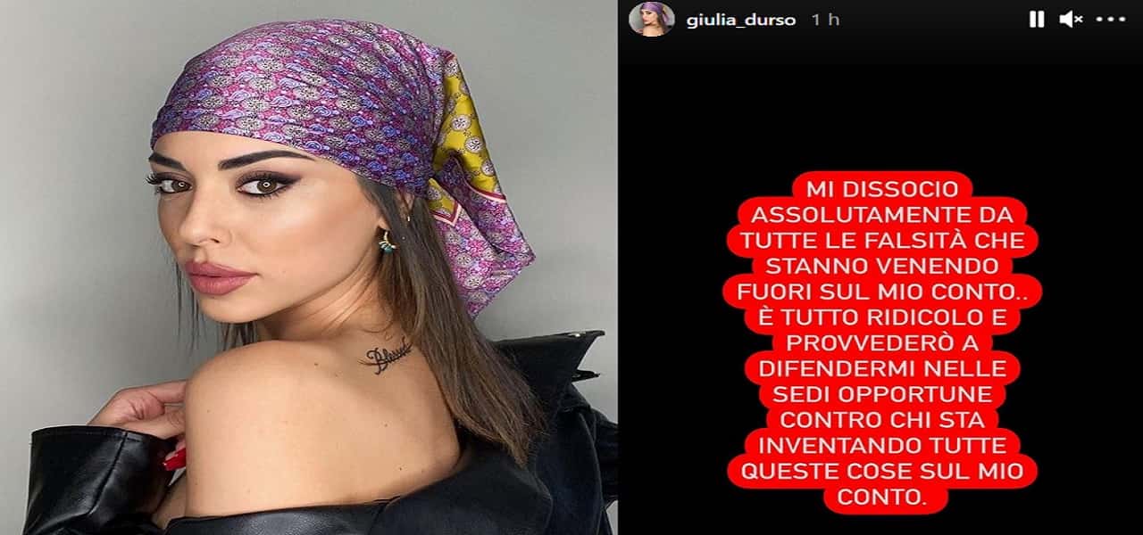Giulia D’Urso si difende da tutte le notizie che stanno circolando sul web secondo le quali sarebbe stata lei ad avvisare i carabinieri per segnalare la festa del calciatore interista Lukaku. Giulia D’Urso, diventata popolare per la partecipazione a Uomini e Donne come corteggiatrice di Giulio Raselli con cui ha vissuto una storia d’amore durata qualche mese, con una storia pubblicata tra le storie di Instagram, prende le distanze dalle notizie che stanno circolando sul suo conto. Di fronte ai numerosi rumors che la indicherebbero come la presunta talpa che avrebbe messo nei guai Lukaku, la D’Urso smentisce categoricamente e promette di difendersi nelle sedi opportune. Classe 1995, la modella ed influencer, originaria del Salento, si è trasferita a Milano e dopo la partecipazione al programma di Maria De Filippi ha continuato a lavorare come modella e influencer.