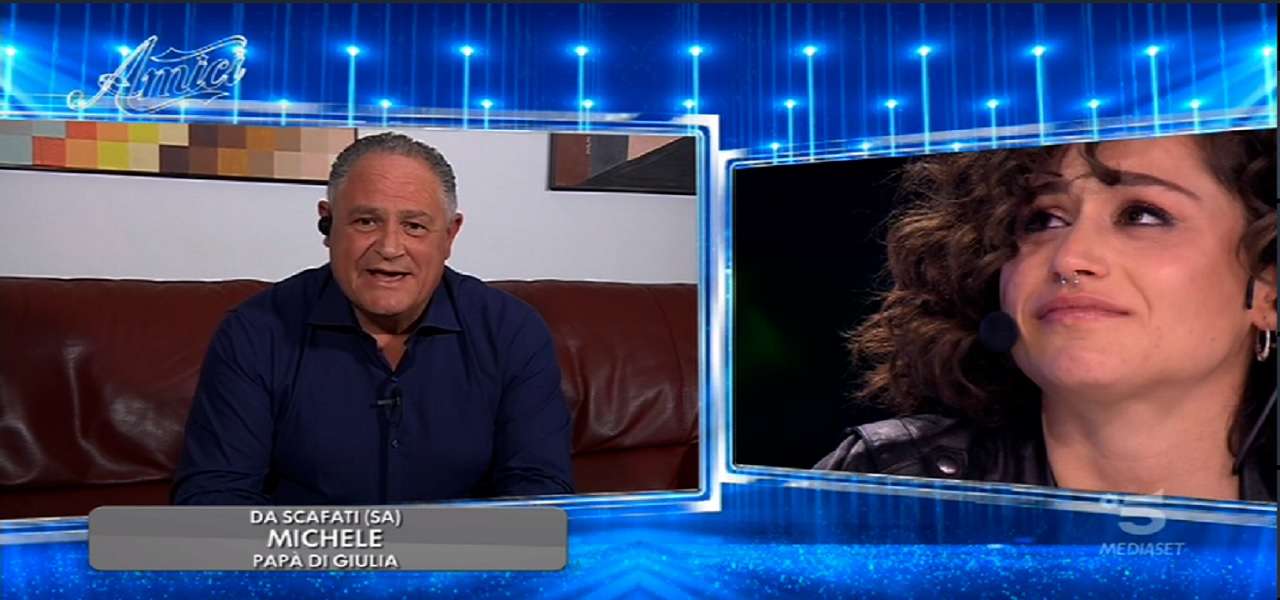 Serata di sorprese nello studio di Amici 2020. Anche per Giulia Molino c’è una persona molto speciale in collegamento: suo papà Michele. La cantante scoppia in lacrime ed è palesemente emozionata, soprattutto di fronte alle parole ricche d’amore e di orgoglio del suo papà. “Io, mamma e Federica siamo davvero molto fieri di te. – esordisce l’uomo in collegamento con lo studio di Amici – Non hai avuto paura di mostrare le tue debolezze e le tue fragilità. In questo modo sei riuscita a dimostrare di essere una donna piena di energia e carica, che noi già abbiamo intravisto quando tu hai incontrato tutte le difficoltà durante la tua adolescenza.”