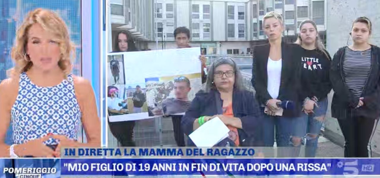 Domenica è disperata da quando suo figlio, Giuseppe Cecchia, è ricoverato in terapia intensiva, lottando per la vita: “Lui è la mia luce ed ora la casa è vuota. Mi hanno detto che ora e sul filo di un rasoio. Giuseppe è un ragazzo d’oro sia con i suoi amici sia con me, quando non riesco ad alzarmi dal letto lui cucina per me e mi porta i pasti a letto”. La donna, a Pomeriggio 5, ha raccontato di aver saputo dagli amici del figlio ciò che è accaduto quella sera in discoteca: “I suoi amici mi hanno raccontato la brutalità con cui lo hanno aggredito. Gli hanno scaraventato addosso un masso con l’intenzione di fargli del male. Il suo amico è riuscito a spostarsi ma mio figlio no. Io ho denunciato tutti i presenti, anche i buttafuori della discoteca perché non si può rischiare la vita in questo modo”.