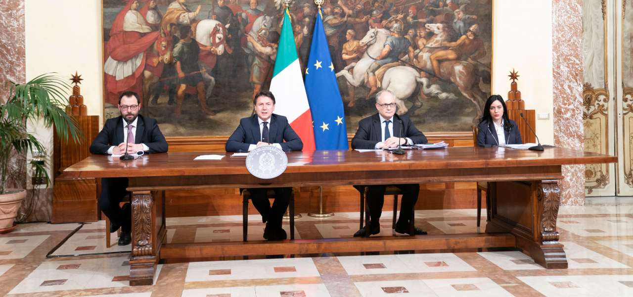 Conte, Gualtieri, Patuanelli e Azzolina presentano il Decreto Liquidità Imprese (LaPresse)