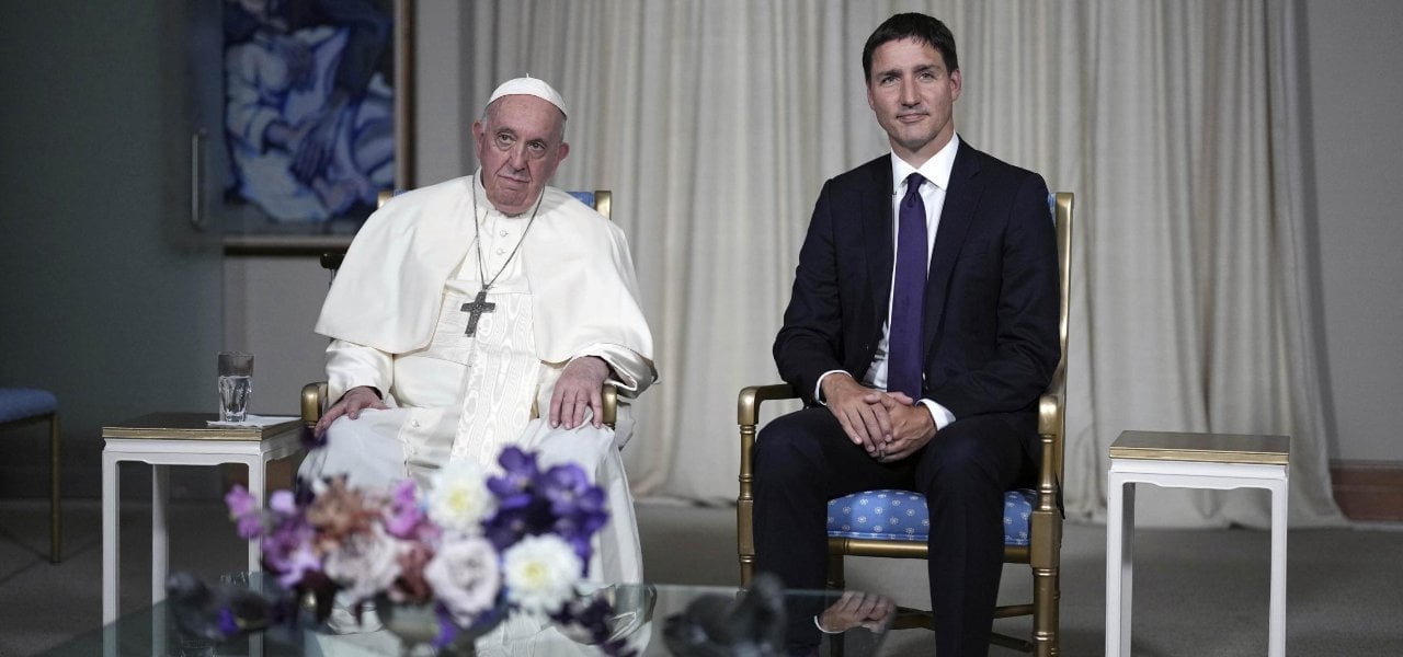 Canada, Papa Francesco con il Premier Justin Trudeau (LaPresse, 2022)