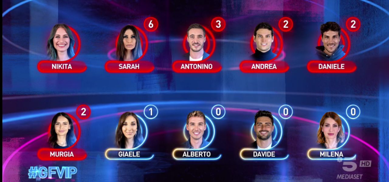 Grande Fratello Vip 2022, diretta e nomination 34a puntata 16 febbraio. Nikita, Sarah, Antonino, Andrea, Daniele e Murgia al televoto: chi sarà eliminato?