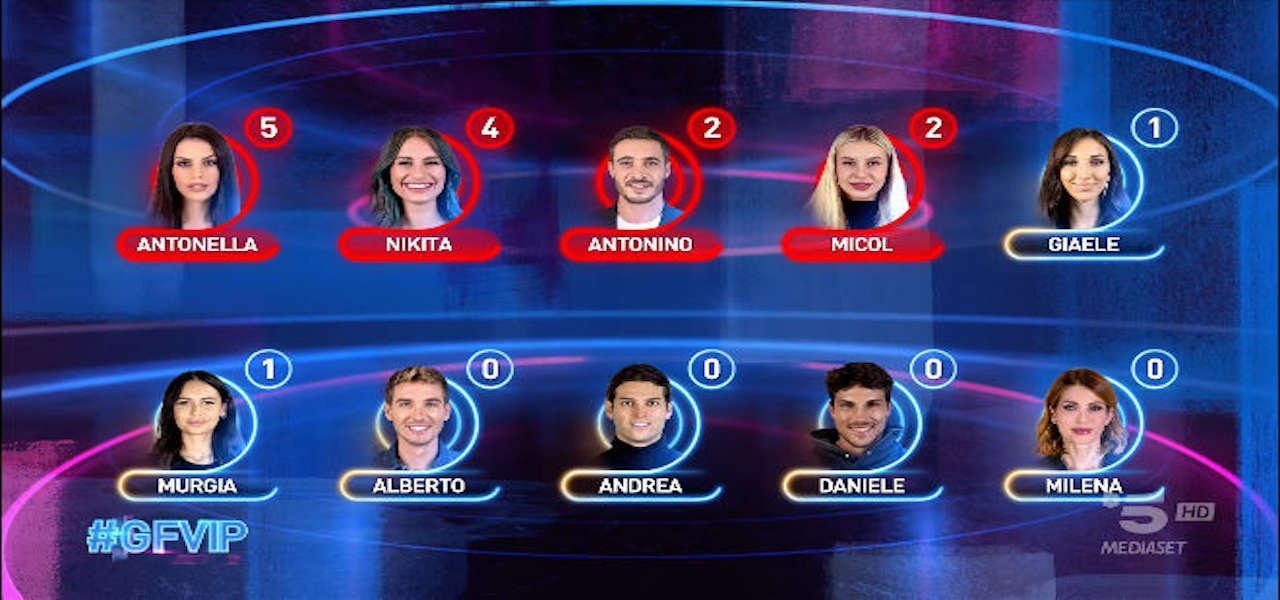 Al televoto ci sono Antonino Spinalbese, Andrea Maestrelli, Daniele Dal Moro, Nicole Murgia, Nikita Pelizon e Sarah Altobello. Dai sondaggi del web, pare che quelli più a rischio siano Antonino Spinalbese che ha più volte espresso il desiderio di tornare a casa da sua figlia, Nicole Murgia e Andrea Maestrelli che, essendo entrati solo due mesi fa, potrebbero avere il biglietto di ritorno che, invece, i concorrenti in casa da settembre, non hanno più.