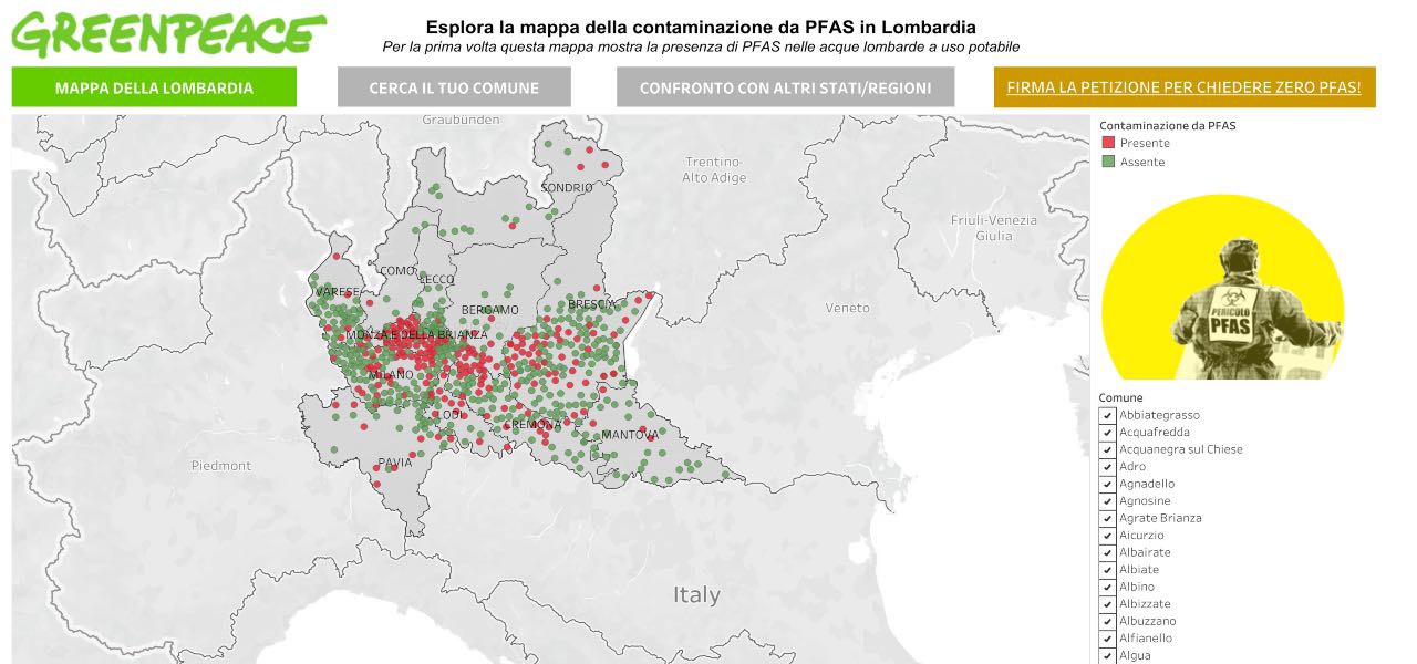 La mappa della contaminazione da Pfas in Lombardia (Greenpeace Italia)