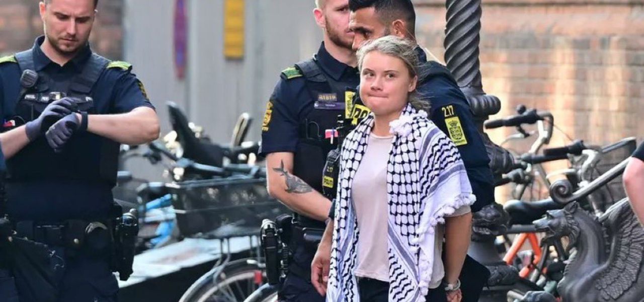 Greta Thunberg is arrested by Danish police at a pro-Hamas protest at the University of Copenhagen in Denmark pic.twitter.com/OeW1KobkrH