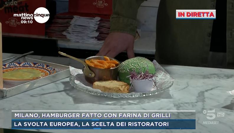 A Mattino 5 si torna a parlare di cibi alternativi e in questo caso è stato presentato un curioso hamburger di farina di grilli, il Grillo Cheesburger. In collegamento con il programma di Canale 5, un ristoratore milanese di Pane e Trita ha mostrato la sua prelibatezza in diretta tv: “Ci troviamo nel primo locale in Italia che propone la pietanza a base di insetto”, ha spiegato l’inviato del talk. Pavel, il co-fondatore del locale, ha aggiunto: “In questo panino abbiamo il pane verde che è fatto con alga spirulina, l’hamburger fatto con una base vegetale a cui viene incorporata la farina di grilli. Poi abbiamo la patata croccante, la scamorza, il cavolo cappuccio a cui viene incorporata la salsa Pane e trita. La farina di grillo è dentro la polpetta che viene poi assemblata direttamente nell’hamburger”.