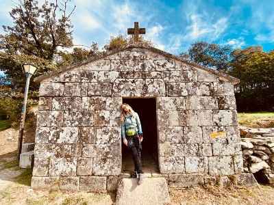 Alle 14.47 ci siamo concessi un secondo pit stop, rifocillandoci con yogurt, miele della casa e tortillas, senza dimenticare l’immancabile rifornimento d’acqua. A 10 chilometri dall’arrivo di questa prima tappa, ci siamo dati un altro attimo di tregua per riposare le gambe e togliere le scarpe. Nel contempo, una signora di origine cambogiana e francofona ci ha rivolto un sorriso smagliante e anche quando abbiamo ripreso a camminare ha continuato a farlo: ci siamo domandati se dietro questo eccessivo sorriso si celasse una profonda tristezza o se, invece, si trattasse di un aspetto, indubbiamente invidiabile, del suo carattere. Poco più in là, abbiamo avuto modo di visitare una piccola chiesa, molto carina, al cui interno sono custodite lettere e fotografie, presumibilmente di defunti. Quel luogo emanava un’energia spirituale molto positiva, tanto che ci sono tornati in mente i nostri nonni: questa cosa ci ha fatto sorridere ed emozionare, poiché ha fatto emergere la parte più spirituale del nostro essere.